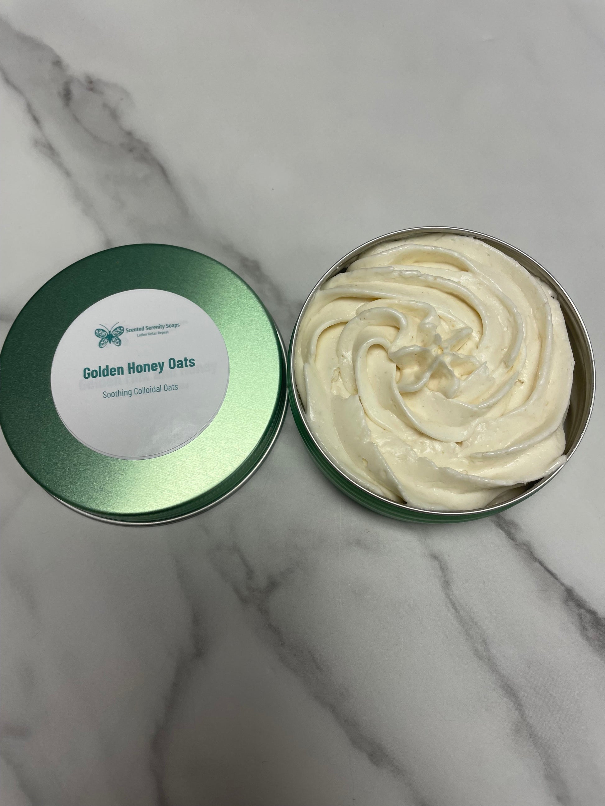 ingredients: water, shea butter, mango butter, coconut oil, jojoba oil, argan oil, emulsifying wax, cetyl alcohol, fragrance, preservative, colloidal oats