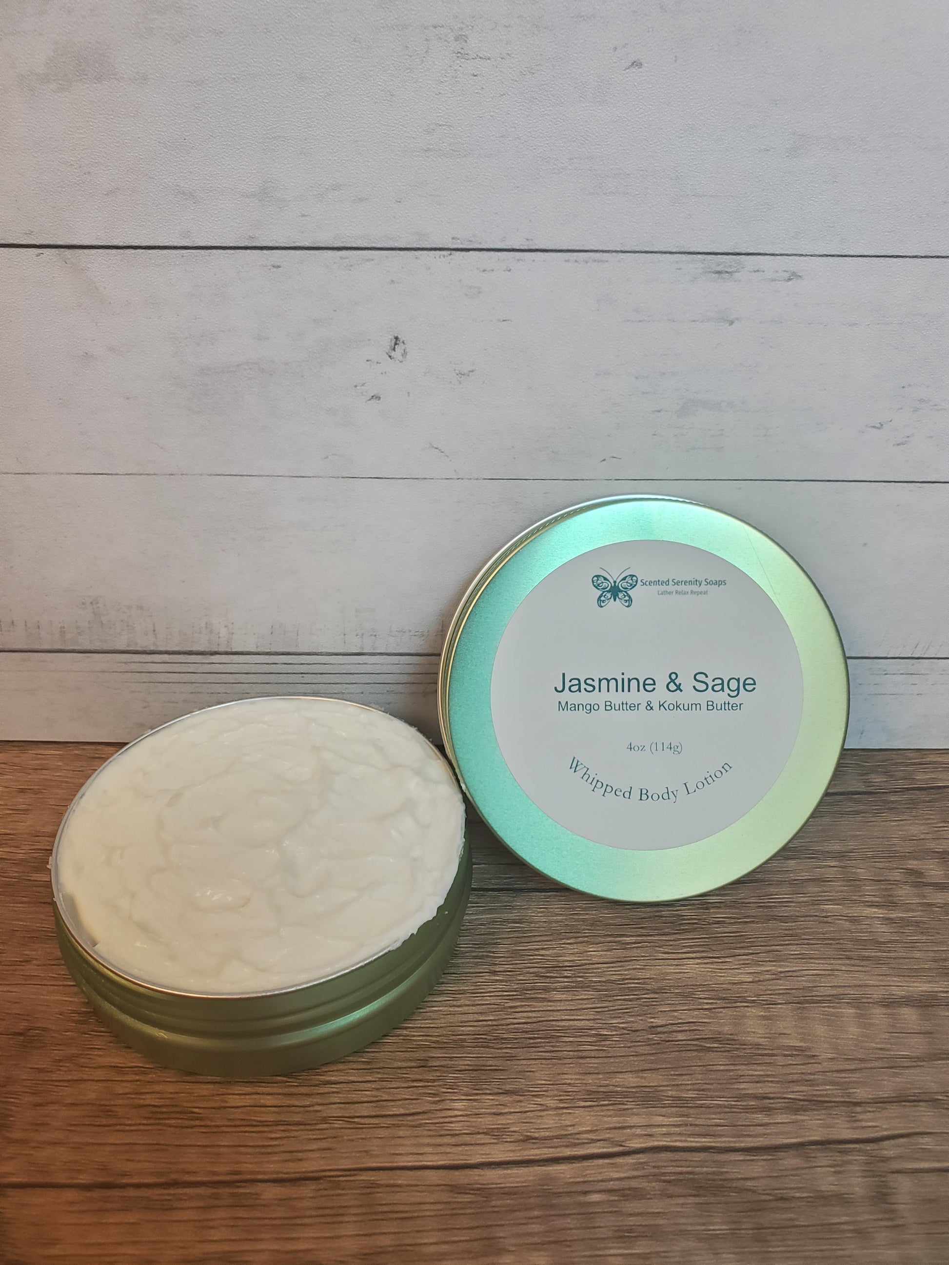 Ingredients: Mango Butter, Kokum Butter, Coconut Oil, Sunflower Oil, Cetyl Alcohol, Emulsifying Wax, jasmine essential oil, sage essential oil.